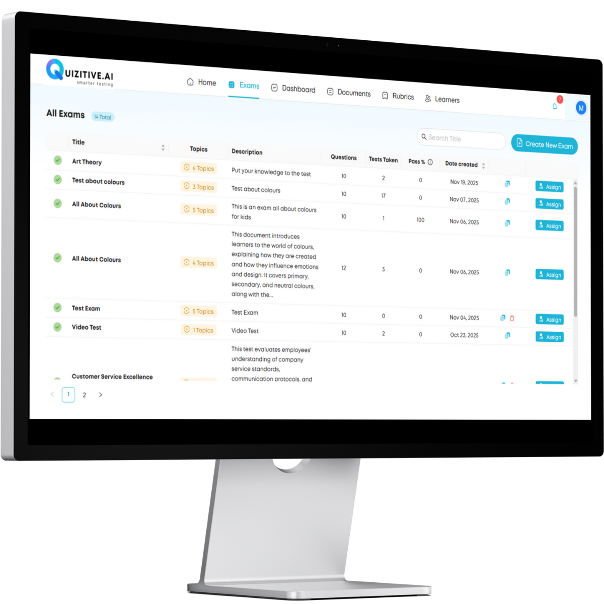From Presentation to Professional Exam in Minutes: Educators can instantly convert documents, PDFs, MP4 videos, rubrics, or live presentation content into fully structured exams. This removes the need for manual question writing and dramatically reduces preparation time, allowing instructors to focus more on teaching and less test creation. With automated content generation, educators can launch new assessments almost instantly, making the platform ideal for dynamic courses, frequent testing cycles, or fast-paced training programs.