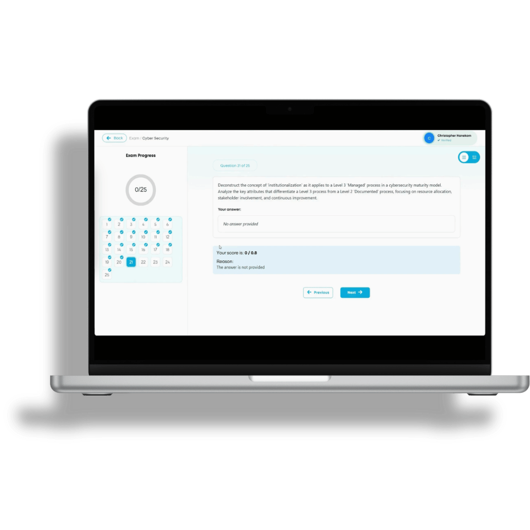 Experience a truly tailored testing journey with unique question sets generated specifically for the test taker from an unlimited AI-powered question bank. Every exam adapts to the learner's individual needs while maintaining fair difficulty levels.